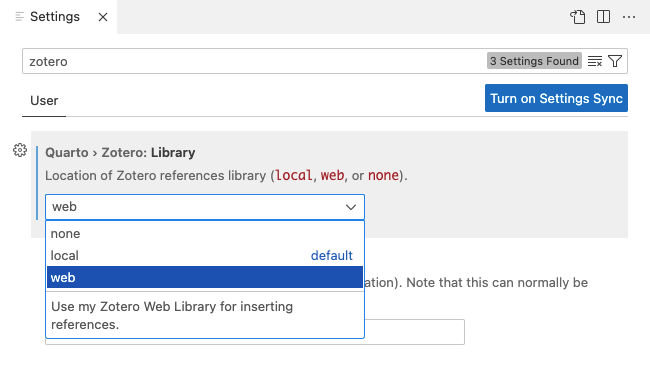 Finally, go to Zotero settings and specify that you’d like to use your web
